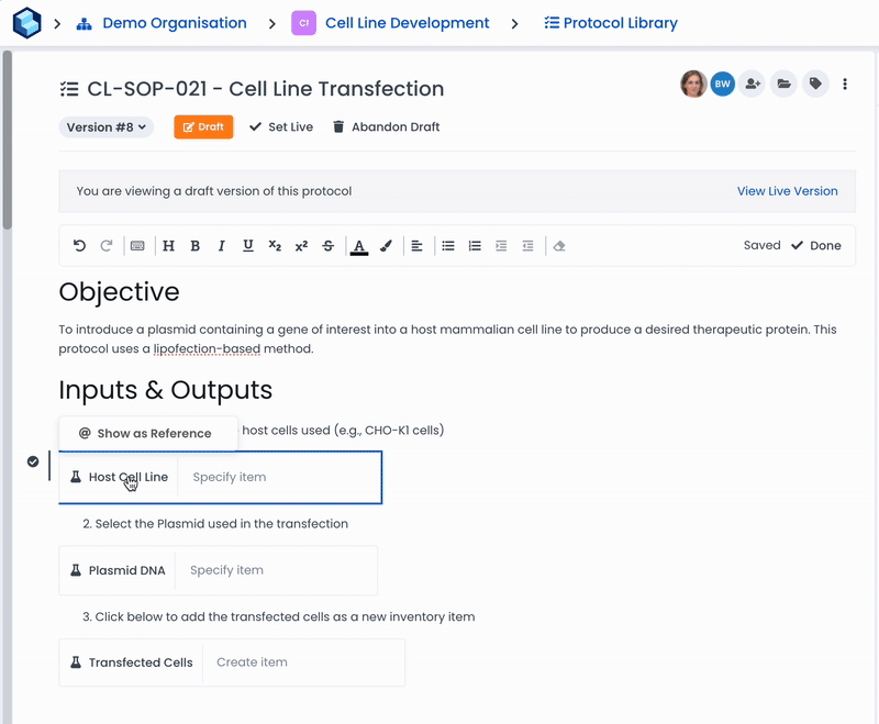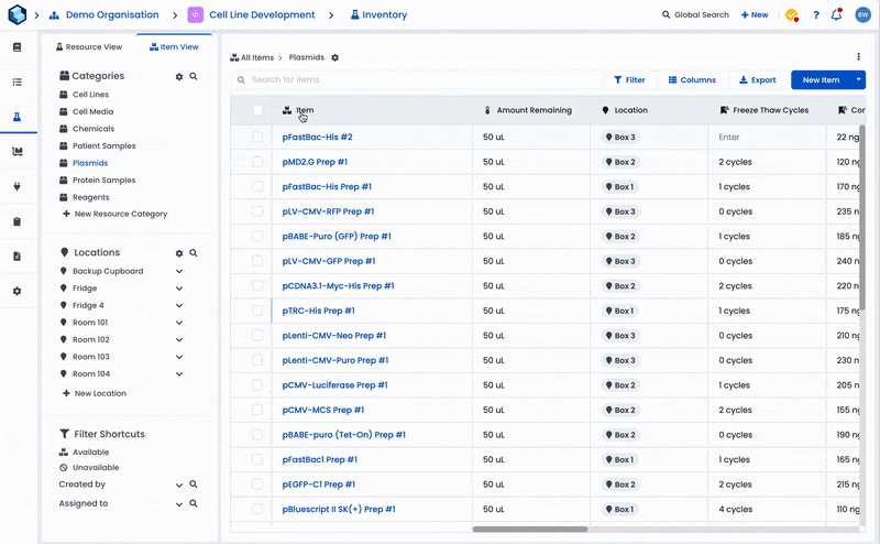 Inventory fields can now be visualised as an interactive form field in your experiments and protocols to streamline the process of selecting / creating items.