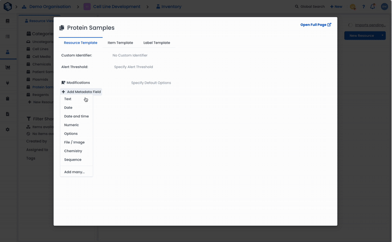 We've added support for RNA and Protein sequences within the Sequence editor tool. When creating a 'Sequence' type metadata field, there is now a dropdown where you can select what type of sequence you want to create.